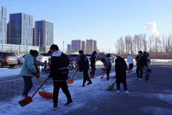 太阳集团tyc138组织学生清理了生科楼前积雪