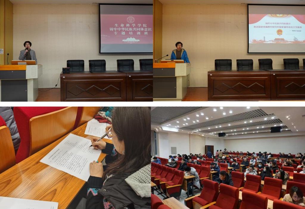 为了深入学习贯彻、全面准确领会习近平总书记关于民族工作、推广普及国家通用语言文字工作的重要论述,进一步提高政治站位,统一思想认识,太阳集团tyc138于2021年1月7日和8日上午9:00在生物楼229开展了铸牢中华民族共同体意识专题培训,本次培训由我院党委书记张慧荣主持,我院全体教师参加。1月7日上午,张慧荣书记以《国家统编教材使用和国家通用语言文字教育》为题,围绕“强化理论武装,打牢思想基础”、“坚持问题导向,坚...