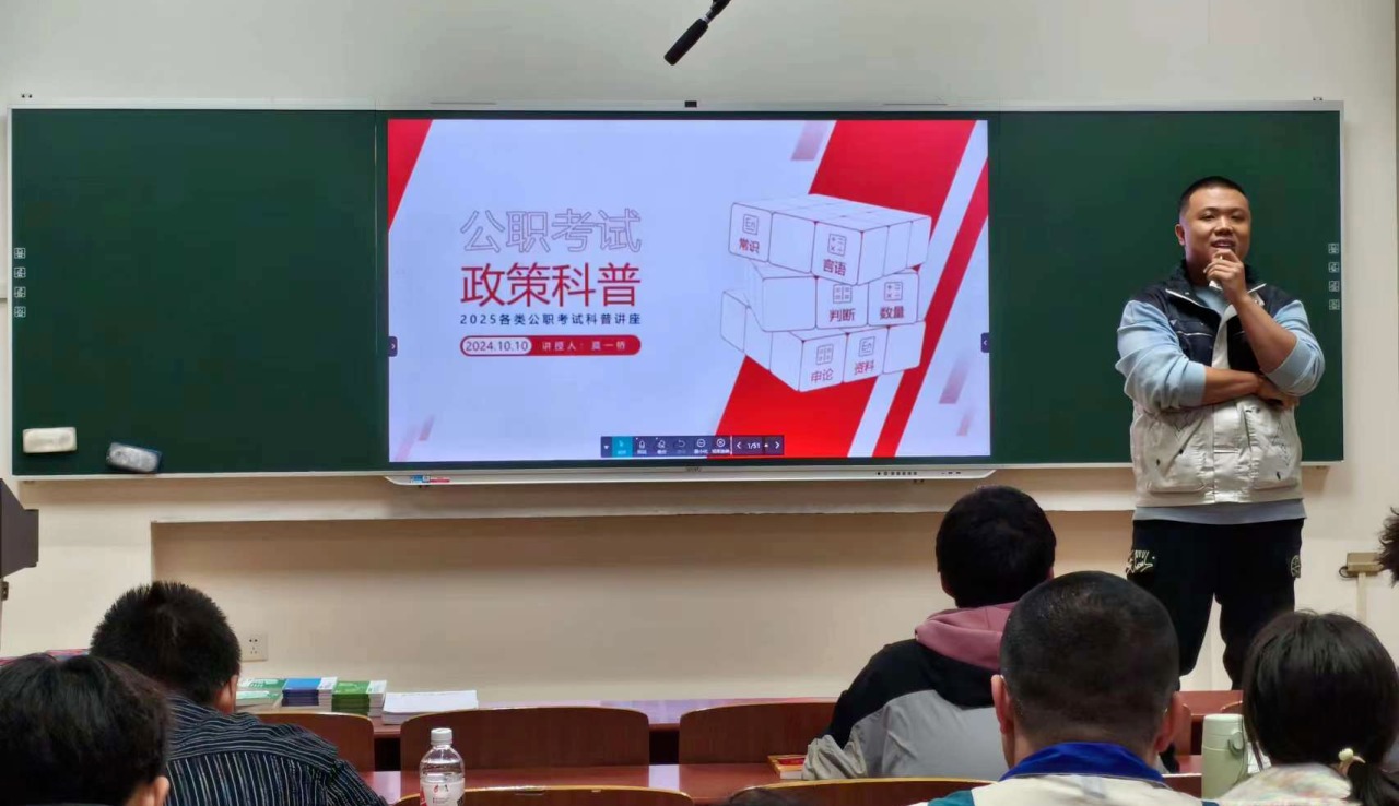 为了帮助广大学子更好地了解研究生考试和公务员考试的相关信息,提升备考的针对性和有效性,太阳集团tyc138于10月10日19:00在卓越楼DF302开展考公考研指导讲座。考公资深讲师莫一桥,考研资深讲师乌日娜及众多学生参加讲座。会议由张铁峰老师主持。讲座首先由莫一桥老师介绍了考公的最新动态和最佳复习方法。老师分别从公职类考试类型,难度梯度,自我检测,备考流程等方面展开说明,帮助准备考公的学子明确方向,提供帮助。接下...