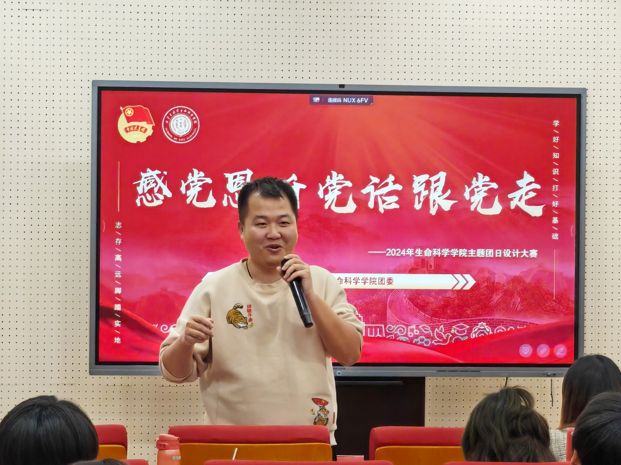 为加强基层团组织建设和规范化运行,增强我院团组织的凝聚力、号召力、感染力,教育引导广大团员青年在知党恩、念党好、信党能中感党恩、听党话、跟党走,太阳集团tyc138于2024年10月24日19:00在玉泉校区生科楼229举办“感党恩、听党话、跟党走”主题团日设计大赛,面向太阳集团tyc1382022-2024级各团支部。本次比赛由专职辅导员冯昶瑞老师,王予彤老师以及来自2021级生物工程专业的牛艺霖和来自2021级生物科学专业的郭婧伊担任评委...