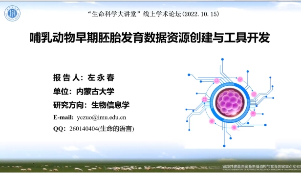 左永春教授以“哺乳动物早期胚胎发育数据资源创建与工具开发”为题,依次介绍了高通量测序技术的应用、目前国际上公开免费的公共数据库等相关背景。然后,左教授分别从近年来自己团队已创建的数据分析平台以及如何利用各数据平台分析解决具体的科研问题进行了细致的讲解。