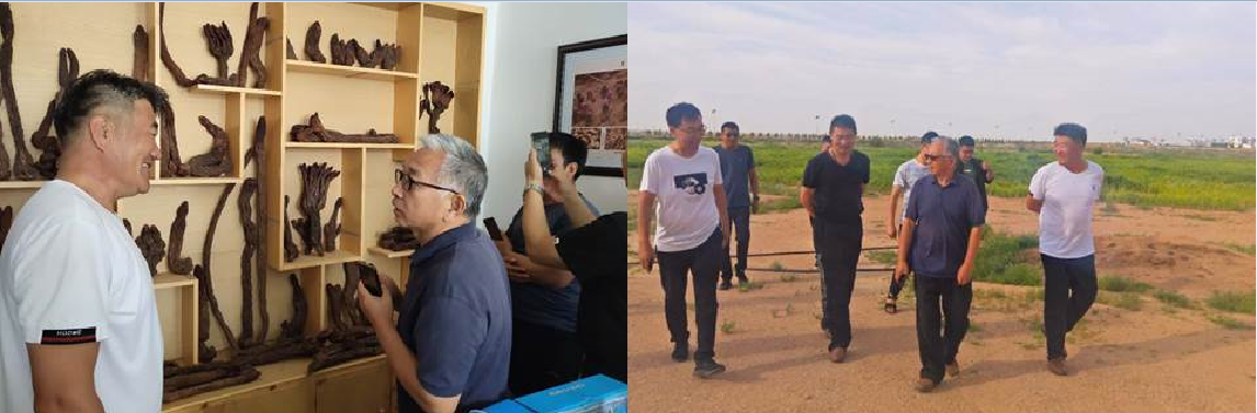 期间团队参观了阿拉善左旗塔本阿勒达沙生产业有限责任公司锁阳加工工厂及白刺育苗基地。