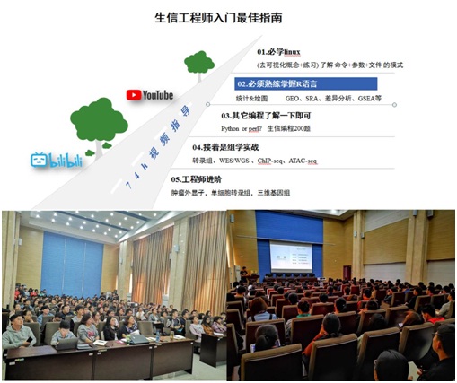 针对内蒙古自治区生命学科领域组学大数据和生物信息学的个性化科研分析需要,2019年5月12日下午,我院省部共建国家重点实验室左永春教授邀请了国内生信技能树公众号的创始人,澳门大学曾健明博士在国重实验室320报告厅开展了一场生信技能专题报告会,报告会吸引了全区近200名生物信息学爱好者的积极参与。