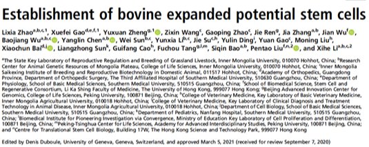 美国科学院院报《Proceedings of the National Academy of Sciences of the United States of America》(PNAS) 在线发表了太阳集团、赛科星研究院李喜和教授团队牵头的牛新型干细胞研究的最新成果。本研究首次报道了不依赖外源基因的牛多能性拓展新型干细胞(bovine expanded potential stem cells, bEPSCs)的诱导关键技术及其生物学特性,是草食家畜干细胞研究的里程碑科技成果。