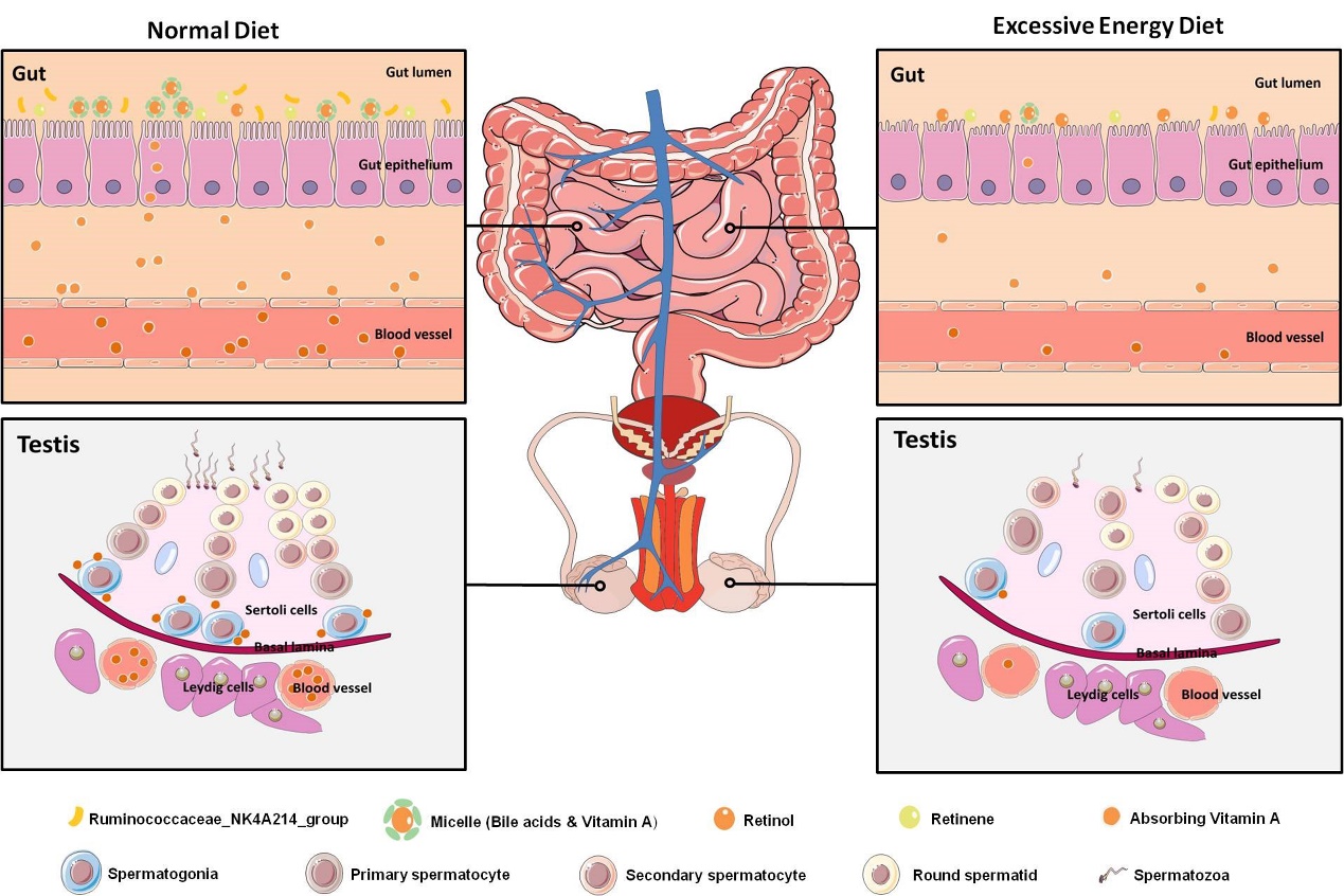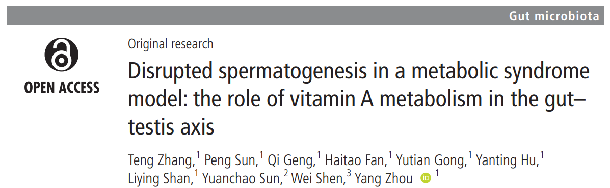 2021年1月27日,我校太阳集团tyc138、省部共建草原家畜生殖调控与繁育国家重点实验室张滕研究员和周扬研究员团队以太阳集团为论文第一作者和通讯作者单位在国际顶级期刊《Gut》(中科院大类1区Top期刊;影响因子19.819)在线发表题为“Disrupted spermatogenesis in a metabolic syndrome model: the role of vitamin A metabolism in the gut-testis axis”的研究成果,该团队首次报道了在饮食诱导的代谢紊乱绵羊模型中,肠道菌群失调与胆汁酸水平降低影响了脂溶性维生素A在肠-睾轴的运输,睾丸中维生素A缺乏导致精子发生异常。