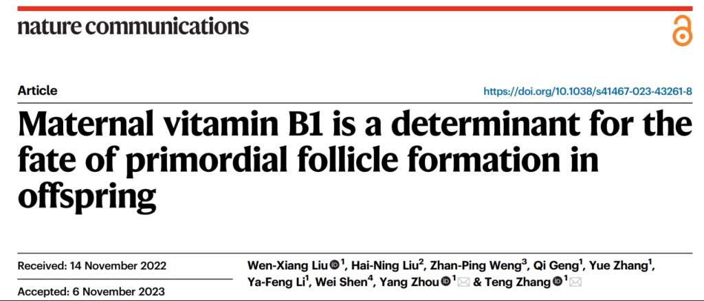 母源性代谢物维生素B1对后代原始卵泡形成的调控机制