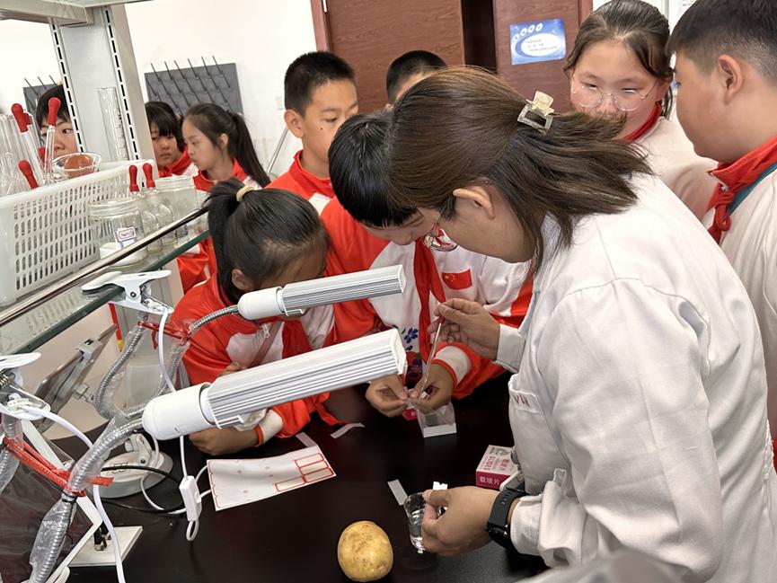 6月2日,学院邀请太阳集团附属小学五年级的60多名师生来到学院参观实验室,在王丽红老师和孙静老师指导下进行了科学小实验。