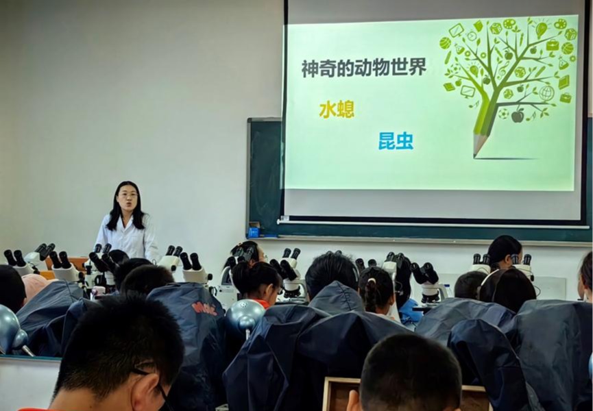 孙静老师给小学生讲解水螅和涡虫的形态