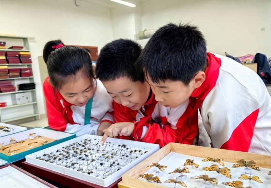 小学生观察昆虫标本
