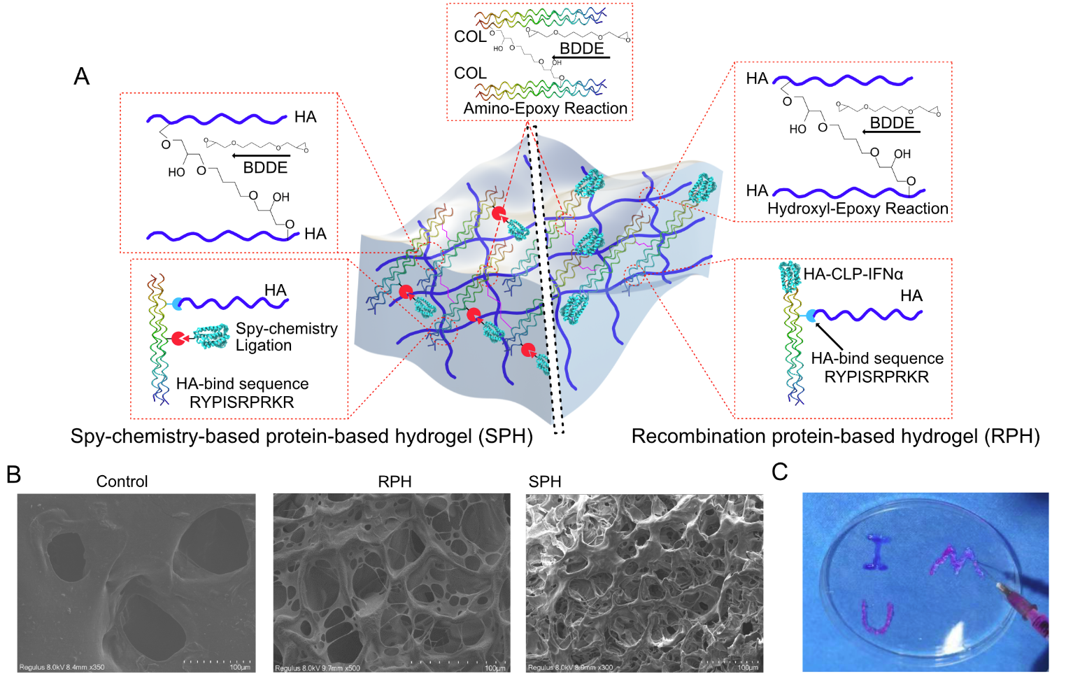 基于这一科学问题,李昕宇课题组基于基因编码嵌合的方法,制备了基于基因重组和基因编码式点击化学两种偶联干扰素α的蛋白基凝胶。研究结果显示,基于基因编码碟化学(Spy-chemistry)策略的干扰素α偶联方法,可以更好的控制干扰素α持续作用,更高效的延长干扰素α作用时间。