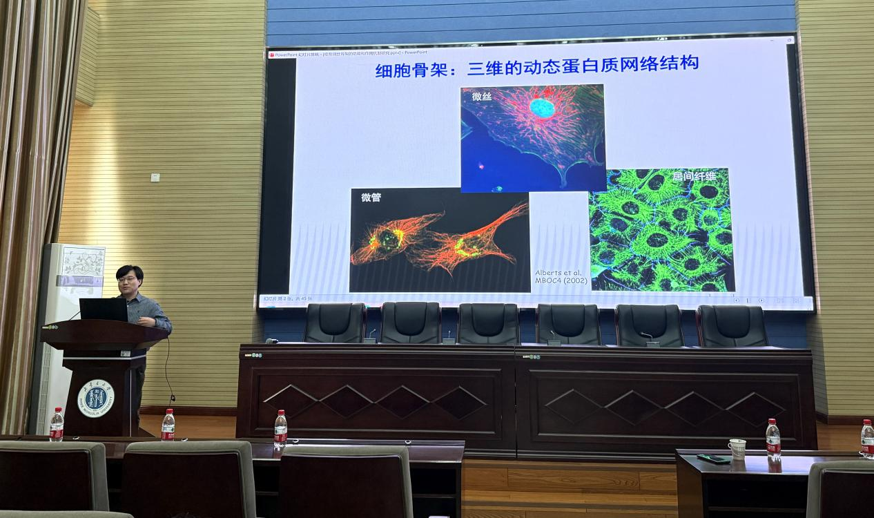 黄善金教授在题为"植物微丝骨架功能与作用机制"的学术报告中,阐述了微丝骨架的结构特征及其生物学功能。报告重点展示了其实验团队在植物细胞骨架研究领域取得的重要进展:(1)花粉管中微丝骨架形成两个空间分离的亚细胞结构——"顶端微丝结构"和"槽部微丝束";(2)揭示了Ca2+梯度和pH梯度通过精细调控ADF(肌动蛋白解聚因子)和villin(微丝结合蛋白)的活性,进而控制花粉管微丝动态变化和空间分布的分子机制;(3)发现了RhoGAP对formin活性的抑制作用,由此提出了formin活性调控的新机制。这些研究成果为深入理解植物细胞极性生长提供了重要的理论依据。
