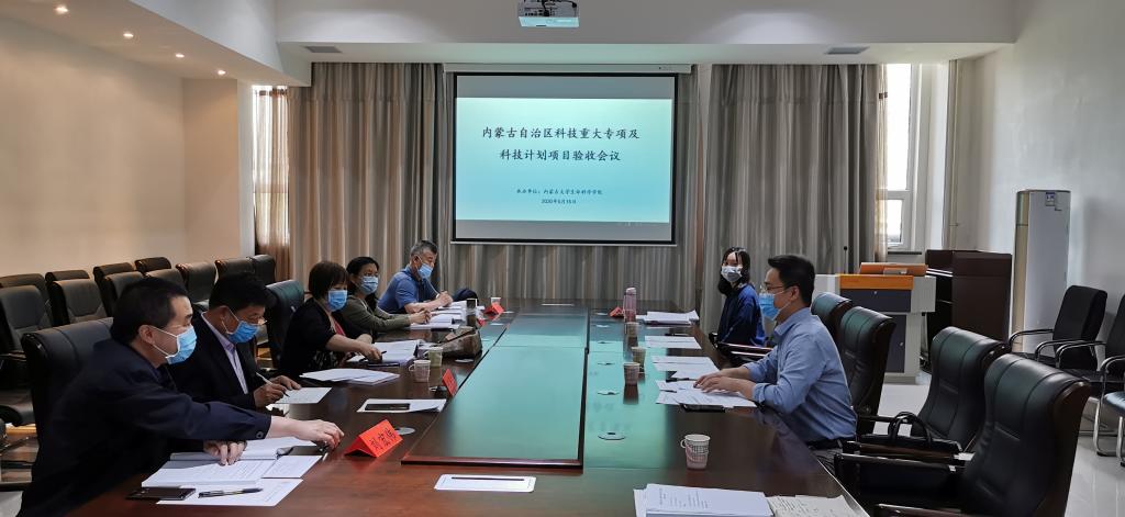 2020年5月15日,受内蒙古自治区科学技术厅及学校科技处委托,组织专家对我院承担的内蒙古自治区科技重大专项及科技计划项目进行了验收。验收会议分为上午和下午两场,分别由张少英教授(内蒙古农业大学)和苏秀兰教授(内蒙古医科大学)担任验收委员会主任,李子钦研究员(内蒙古农牧业科学院)、徐杰教授(内蒙古师范大学)、李旻辉教授(内蒙古中药研究所)、俞腾飞教授(内蒙古医科大学)、哈斯阿古拉教授(太阳集团)、闫伟副研究员(内蒙古科技经费监管中心)、卢萍教授(内蒙古师范大学)、王海生教授(内蒙古医科大学)、哈斯苏荣教授(内蒙古农业大学)及刘宏伟正高级会计师(内蒙古自治区人民医院)担任验收委员会专家,对我院2020年结题的五项内蒙古自治区科技重大专项及科技计划项目进行了验收。