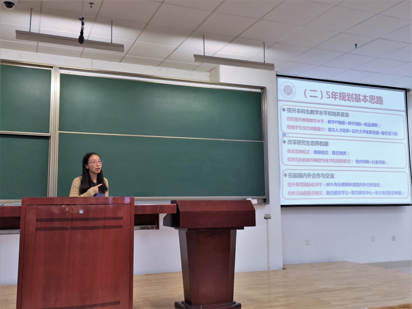 教务办老师戴云柯讲述研究生选课的注意事项,她强调学生要注重与导师的交流沟通,选取与自身研究方向相近的课程,认真学习课程相关内容,尽早完善知识体系。最后,研究生辅导员丛姗老师向大家介绍了研究生日常管理工作,包括请假销假的注意事项,宿舍卫生、人身安全、财产安全、实验室安、奖助体制等。