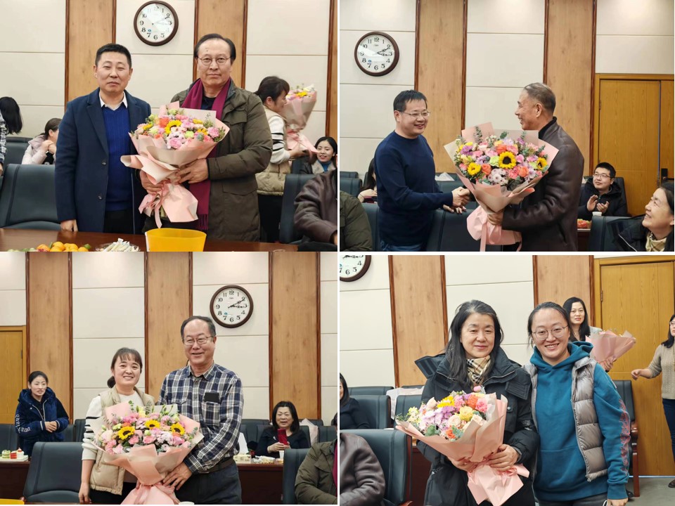 会议由学院党委书记张慧荣主持,青年教师们向退休教职工敬献了鲜花。院长胡薇首先肯定了几位退休教职工对于学院发展的贡献,祝贺老师们光荣退休并开启一段新的生活,同时希望老师们“退而不休”,继续支持学院学科的发展。