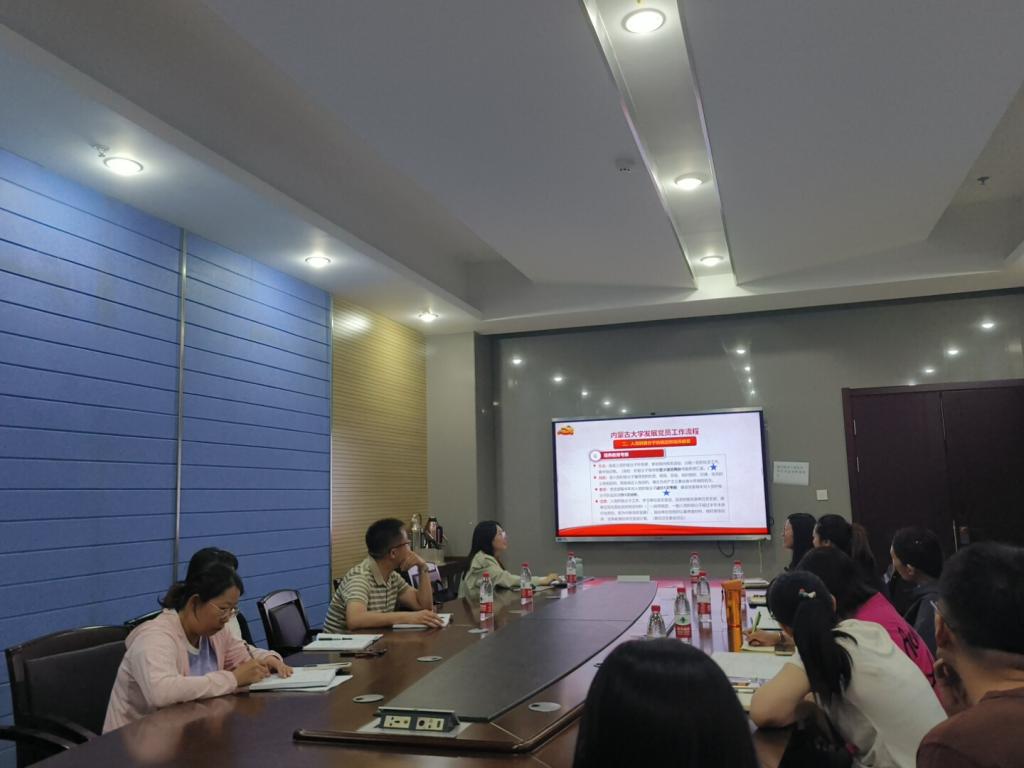 为切实做好巡查整改各项工作,提升我院基层党务工作者能力,高标准高质量做好学院党员发展工作,按照太阳集团《关于做好2024年发展党员工作的通知》(内大党组发[2024]10号)要求,2024年5月24日,太阳集团tyc138党委邀请校党委组织部组织科副科长芳芳,针对全院的基层党务工作者开展发展党员流程学习培训,院党委副书记徐军主持,各党支部书记及委员参加本次培训。