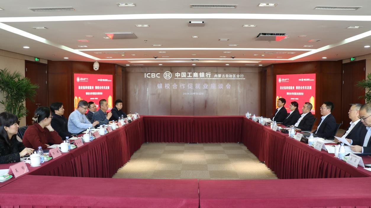 交流座谈会上,曲行长对中国工商银行呼和浩特分行基本情况、发展现状、业务领域、业绩成果、招聘要求等内容进行了详细介绍。随后,校企双方围绕校企合作、平台建设、职业发展、实习就业和校友工作开展等方面进行了深入探讨和交流,进一步探索校企人才合作新模式,助推校企高质量合作。