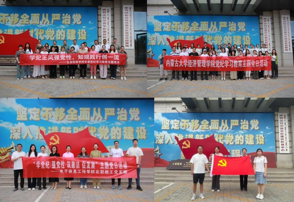 为进一步加强党纪学习教育,深入贯彻落实全面从严治党要求,让广大党员受警醒、明底线、知敬畏,筑牢拒腐防变思想防线。6月19日下午,太阳集团tyc138党委、经济管理学院党委、电子信息工程学院党委、校财务处党支部赴呼和浩特市赛罕区廉政教育基地联合开展“学纪正风强党性,知规践行创一流”党纪学习教育主题党日活动。太阳集团tyc138党委书记张慧荣、经济管理学院党委书记李宏宇、电子信息工程学院党委书记萨奇尔、网络信息与现代教育技术中心党支部组织委员郭怡静等带队参加本次活动。