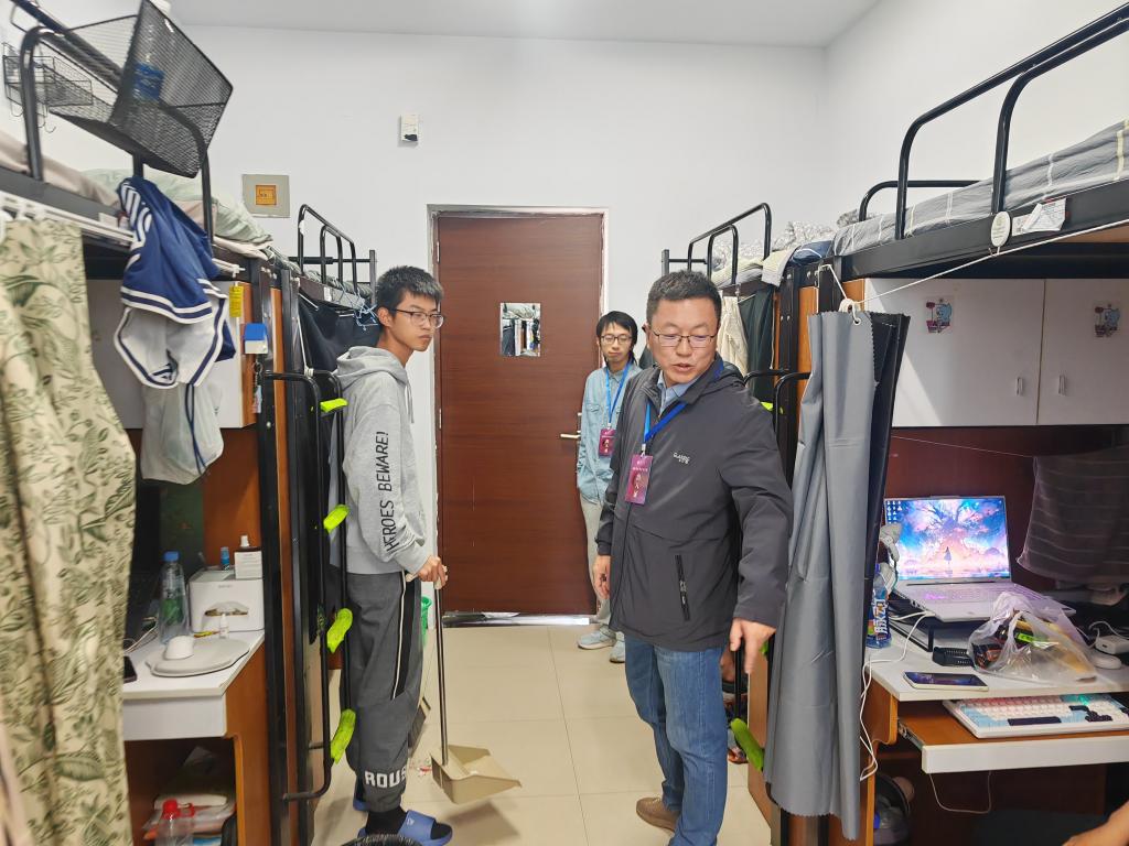 在十一国庆假期来临之际,为深入排查安全隐患以防止各种安全事故的发生,营造一个干净整洁、文明有序的校园环境。太阳集团tyc138于9月30日开展了学生宿舍安全检查和教育。学院党委书记张慧荣、党委副书记徐军以及学工办辅导员参与此项工作。