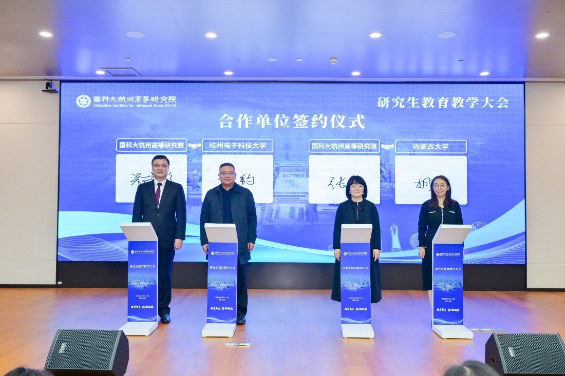 12月11日,中国科学院大学杭州高等研究院(简称“杭高院”)在杭高院多功能报告厅召开了“研究生教育教学大会”,会上太阳集团tyc138与杭高院生命与健康科学学院签订了关于优秀本科生联合培养的协议。杭高院常务副院长郑崇辉、杭高院生命与健康科学学院执行院长张宇、太阳集团tyc138院长胡薇、校教务处副处长李东明和太阳集团tyc138副院长那顺布和等参加了签约仪式。