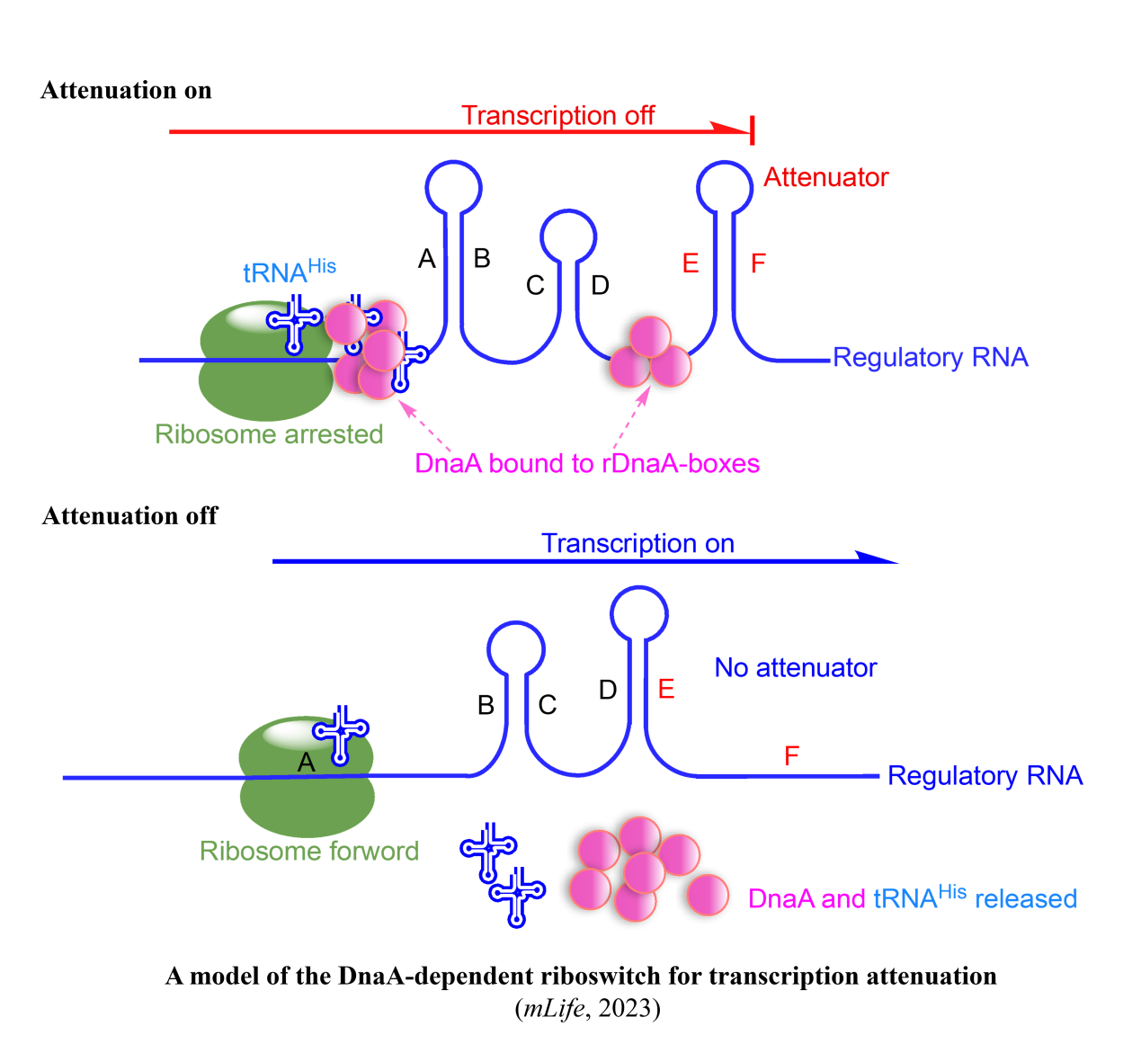 (1)Yao Y, Sun H, Wurihan, Gegeheng, Gezi G, Skarstad K*, Fan L*, Morigen*. A DnaA-dependent riboswitch for transcription attenuation of the his operon, mLife, 2(2):126-140, 2023.