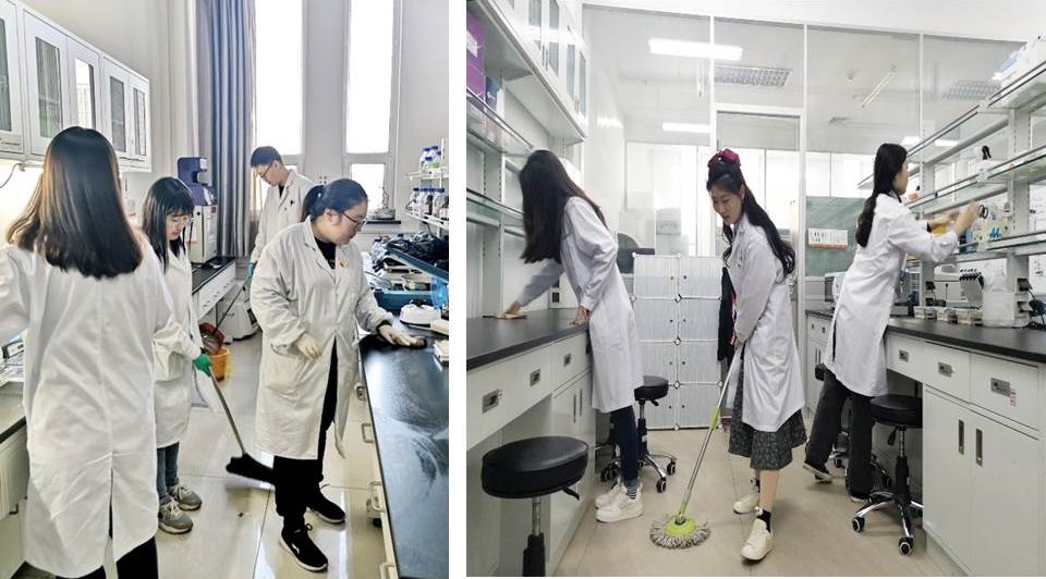 活动以实验室为单位进行,研究生党员们先将实验室药品、试剂和工具分类摆放,再擦净桌面灰尘、清扫地面垃圾并用拖布擦洗地板等。众人拾柴火焰高,经过一个多小时的辛苦劳动,清理过的实验室焕然一新,地面一尘不染,仪器设备陈列有序,药品工具摆放整齐,干净整洁的实验室环境为大家顺利开展科学实验奠定了基础。此次活动党员们团结协作,分工合理,干劲十足,对各实验室进行了认真的清洁,部分团员和入党积极分子受到党员志愿者们的感染也参与其中。