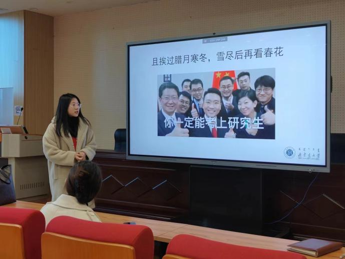 接下来由苏醒、于佳乐、罗杨三位研究生学姐分别针对自身备考经历以及在考研冲刺阶段大家复习方法及心态调整等多个方面进行了分享,同学们收获颇多。在接下来的交流互动环节,学姐们对于同学们现阶段的问题和疑惑进行了耐心解答,同学们纷纷表示这次分享会干货满满,让大家有了继续前行的动力。