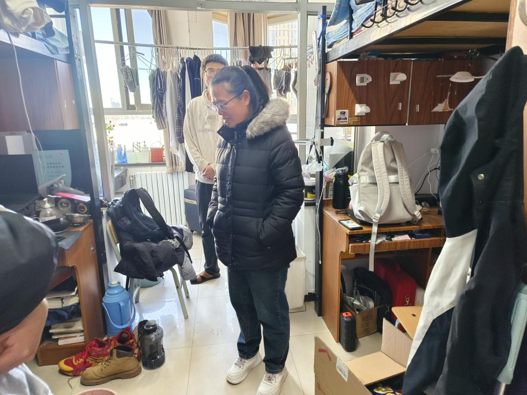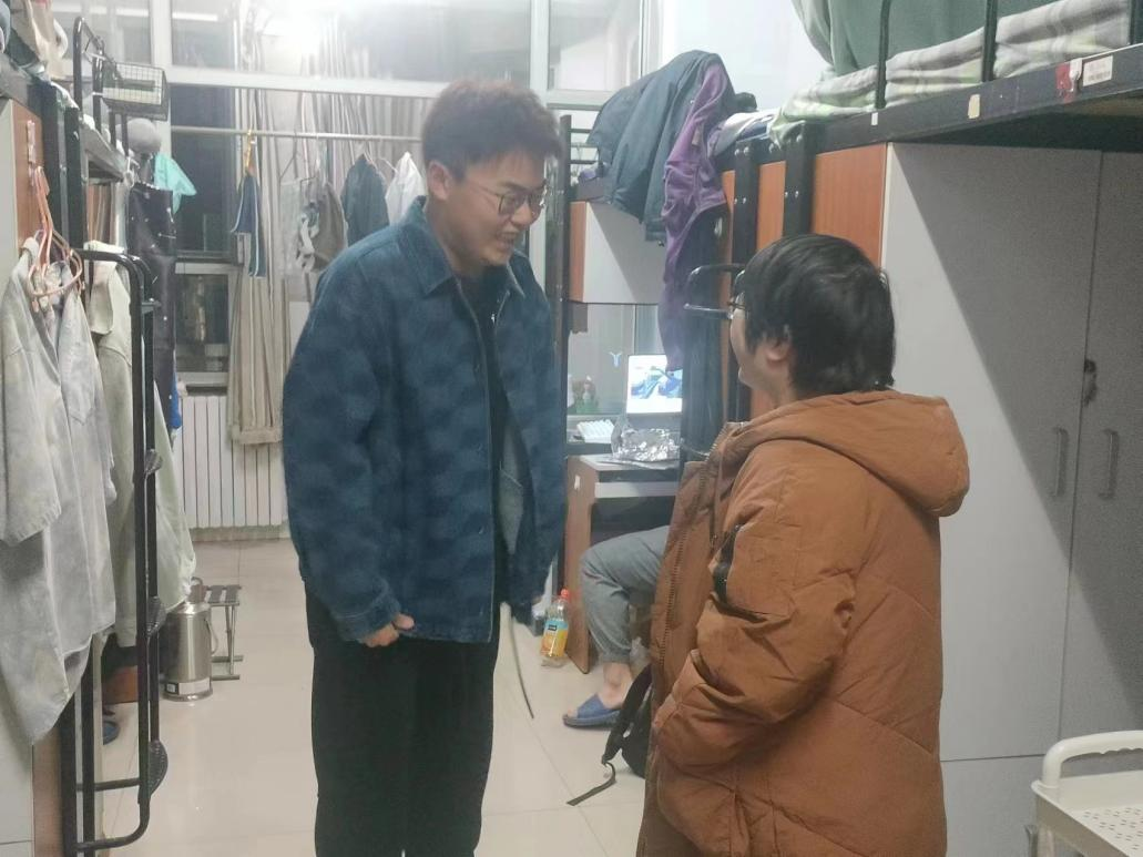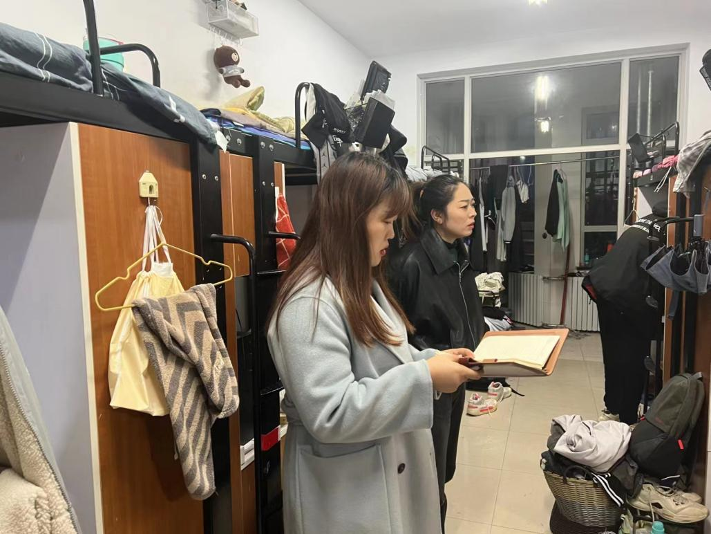 为进一步提高学生的生活质量,督促学生养成良好的生活习惯,创建安全、整洁、文明的学习和生活环境,2023年11月8日-10日,学工办副主任管文荻、专职辅导员冯昶瑞、王予彤,研究生辅导员丛姗、本科班主任及学生辅导员深入本科生和研究生宿舍进行走访和检查,与同学们进行亲切交流。