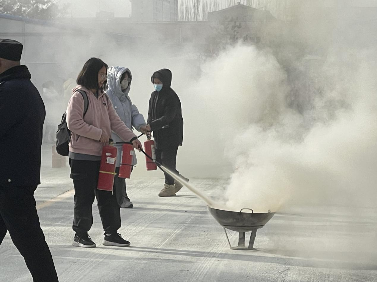 讲座开始前,温老师在卓越楼南西侧广场为同学们现场演示了灭火器的正确使用方法,并带领大家亲身体验了灭火过程,同学们积极参与,收获良多。