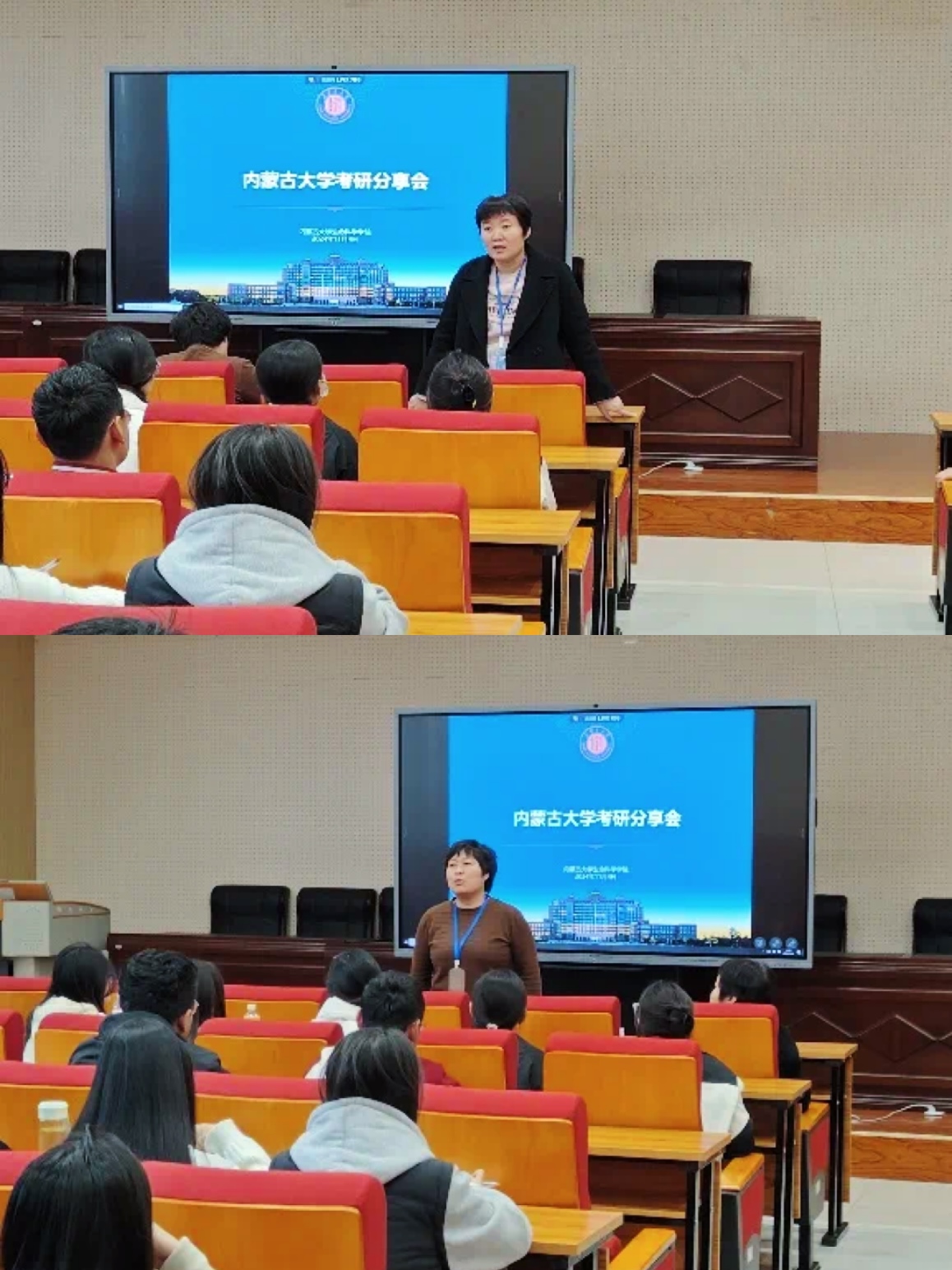 随着考研冲刺钟声的渐行渐近,为激发2021级大四学子在决战时刻的昂扬斗志,优化备考策略,调整心态,太阳集团tyc138于2024年11月4日特别邀请郝慧芳和郑琳琳副教授,为即将踏上研途的学子注入强心剂,答疑解惑,指引方向。