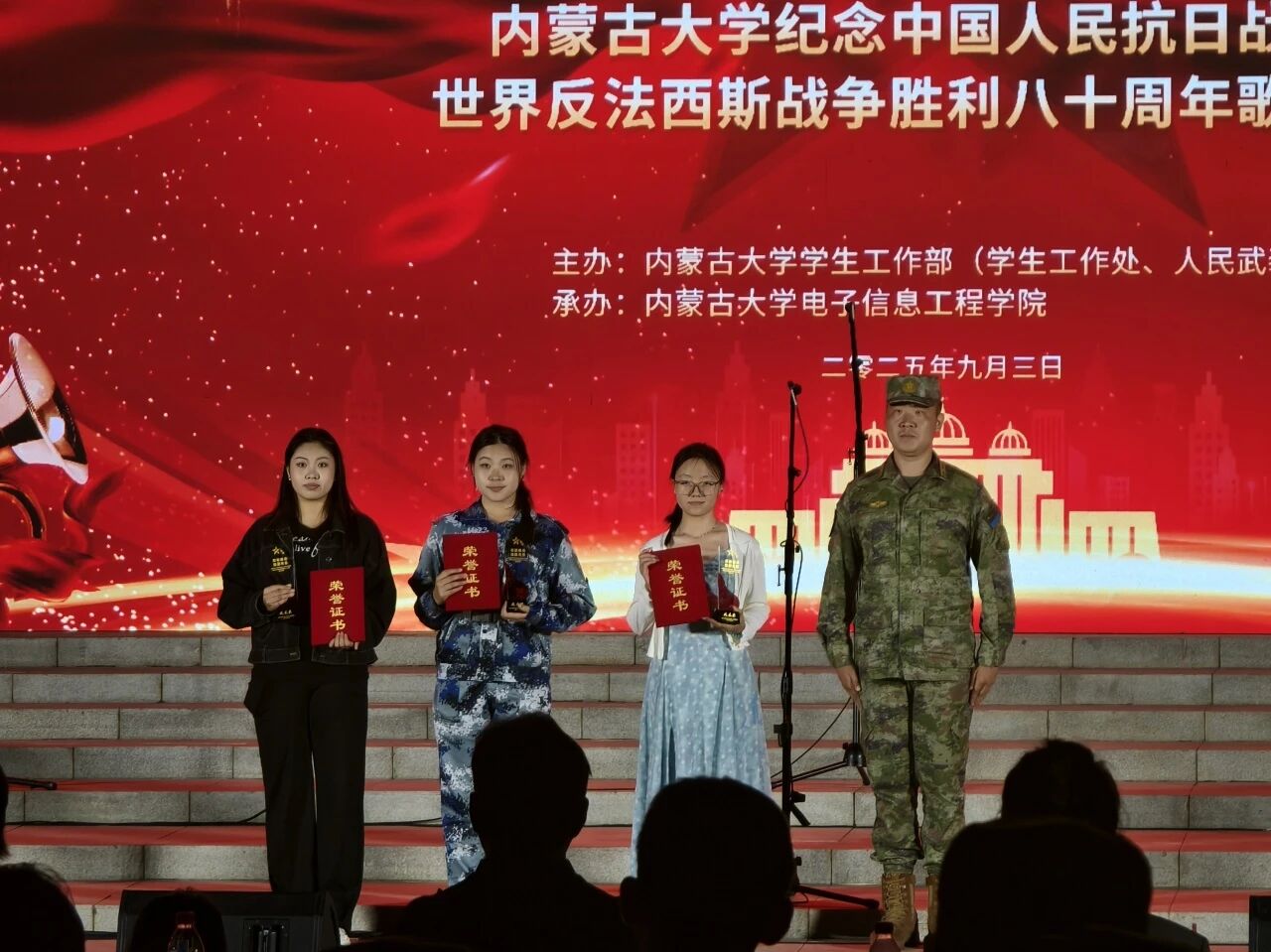 金秋送爽,丹桂飘香。为纪念中国人民抗日战争暨世界反法西斯战争胜利80周年,2025年9月3日,在玉泉校区卓越楼南侧广场举行了“军歌嘹亮,强国有我”太阳集团新生红歌比赛。