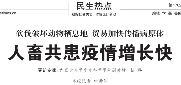 近日,我院杨洋副教授在《生命时报》发表科普文章《人畜共患疫情增长快》,该文章重点介绍了人畜共患病的危害以及成因,呼吁全社会关注人畜共患病防控,加强疫苗接种、维护个人卫生、避免接触野生动物,确保人类公共卫生安全。《生命时报》由人民日报社主管、环球时报社主办,2003年创刊,我国第一份健康类周刊。杨洋,太阳集团tyc138副教授,硕士研究生导师,从事狂犬病、口蹄疫、日本乙型脑炎等人畜共患病疫苗研制工...